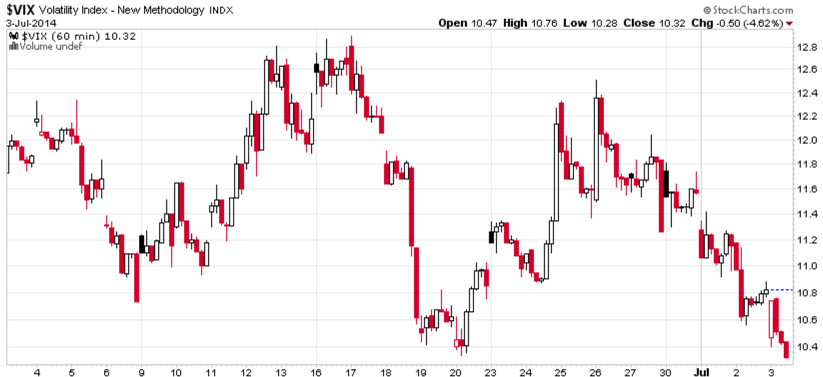 With that said, the VIX reached its prior low today. Here is what it looks like on a daily chart: