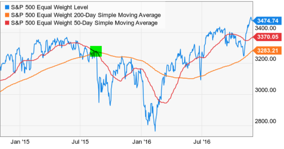 One difference in 2015 and 2016 was the Equal Weight S&P 500 only gave one signal as the cap-weighted whipsawed with two.
