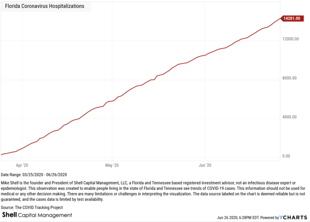 Florida COVID hospitalizations continue in a 45-degree uptrend.