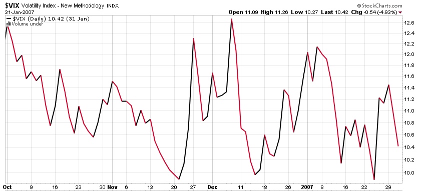 The CBOE Volatility Index (VIX) reached a low point last week not seen since 2007 as evidenced by the chart below.