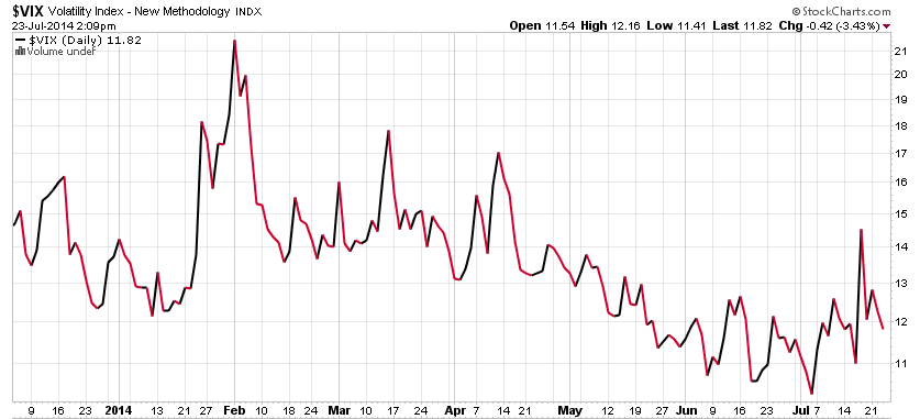 It seemed that many of the commentators who write and talk about the VIX started talking as though it would stay down a long time. Of course, that’s as much a signal as anything that the trend could instead change.