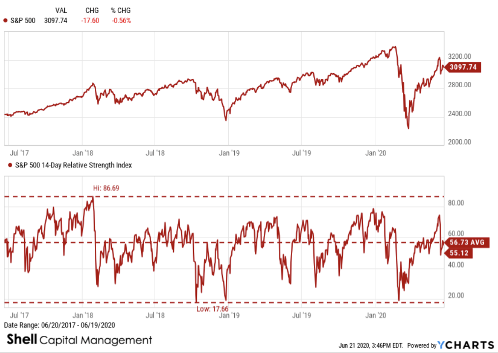 Two weeks ago I pointed out in The stock market is at an inflection point the S&P 500 was stalling as if there is resistance at this price level, and there’s a lot of potential supply for those in a loss trap, and it was getting overbought as measured by the relative strength index. The index trended up a few more percent before pulling back today.